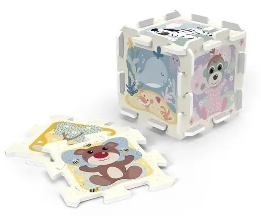 Z piankowych puzzli można budować figury przestrzenne takie jak kostka, czy pudełko lub ułożyć płaski obrazek o wymiarach 118 x 60 cm, który dzięki dobrym właściwościom izolacyjnym może służyć jako miękka mata.