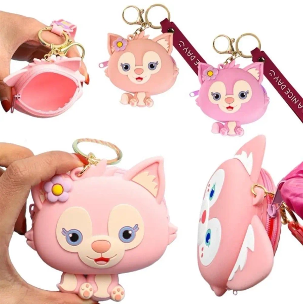 Torebka kotek zapinana na zamek. Wykonana z silikonowego materiału w pastelowych kolorach.