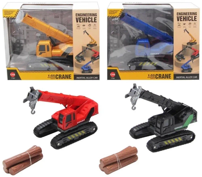 Metalowy model dźwigu z ruchomym ramieniem i drzewem do podnoszenia w zestawie.