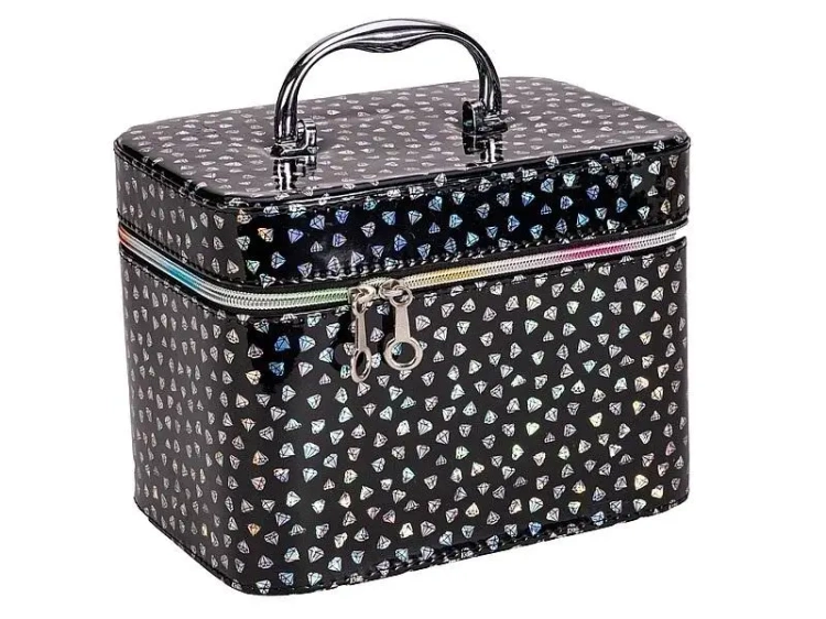 Oferujemy kuferek L, który doskonale łączy w sobie funkcjonalność i elegancję. Ten czarny kuferek ozdobiony holograficznymi akcentami wyróżnia się nowoczesnym designem i praktycznym zastosowaniem.