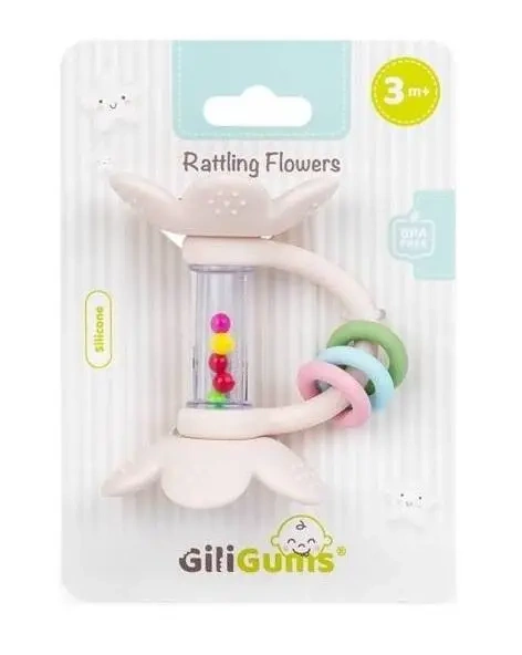 Grzechocząca pałeczka, ozdobiona silikonowymi kwiatkami, wprawi malca w dobry nastrój, bawiąc wesołym dźwiękiem! Zabawka, poza kolorowymi koralikami, wyposażona została także w ruchome obręcze do przesuwania i praktyczny uchwyt, ułatwiający trzymanie zabawki. Za sprawą wypustek znajdujących się na płatkach, kwiatki sprawdzą się w roli gryzaka, przynosząc ulgę obolałym dziąsłom ząbkującego bobasa.