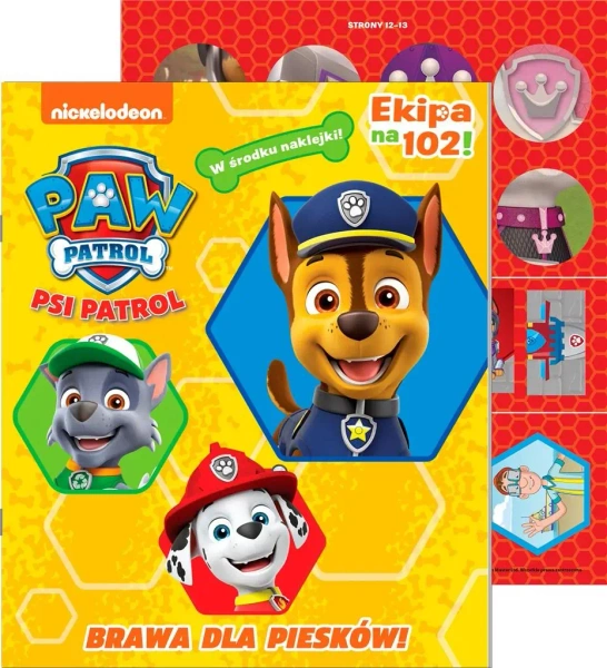 Psi patrol. Ekipa na 102! zawiera zagadki, łamigłówki oraz kolorowanki z ulubionymi bohaterami w roli głównej. W środku również kolorowe naklejki z dzielnymi pieskami! Rezolutne szczenięta Marshall, Rubble, Chase, Rocky, Zuma i Skye oraz dziesięcioletni chłopiec Ryder nigdy nie odmówią pomocy potrzebującym-pomagaj pieskom w ich bohaterskiej misji poprzez rozwiązywanie różnorodnych zadań.