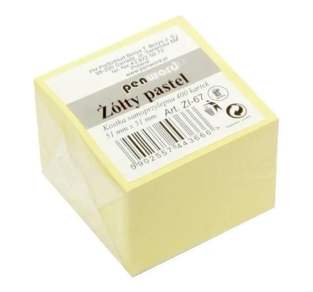 Kostka samoprzylepna pastel żółty 51x51mm 400K - Penword