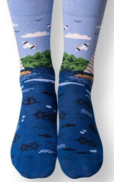 Te skarpetki to doskonały podarunek dla każdego żeglarza, marynarza, a także miłośnika wędkarstwa. Załóż skarpetki ŻAGLE i daj się porwać na morską podróż pełną niekończących się przygód!