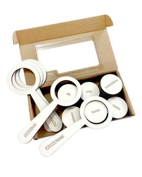 Zestaw zawiera 54 słowa + 5 lup z nazwami części mowy.