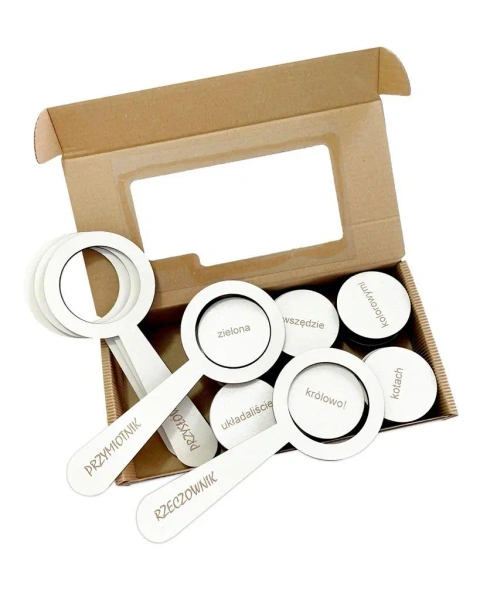 Zestaw zawiera 54 słowa + 5 lup z nazwami części mowy.