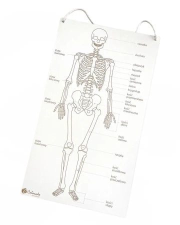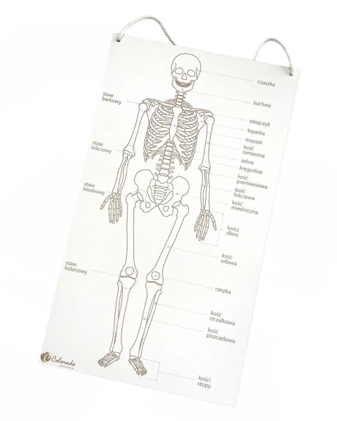 Precyzyjnie wykonana tablica przedstawia ludzki układ szkieletowy wraz z elementami, które go łączą. Dzięki niej dziecko o wiele łatwiej przyswoi wiedzę z zakresu anatomii człowieka.