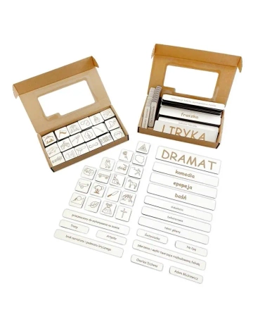 Zestaw rozkładamy z całą klasą. Uczniowie najpierw dopasowują cechy do odpowiednich rodzajów literackich. Następnie do każdego rodzaju dopasowują tytuły lektur, ich autorów i gatunek literacki (uwaga na gatunki synkretyczne). Na końcu dodają symbole. Możemy również poprosić uczniów o podanie cech poszczególnych gatunków i uzasadnienie powiązania symbolu z lekturą.