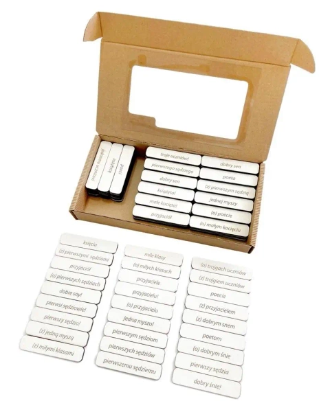 Produkt zawiera odmienione przez przypadki wyrazy (w liczbie pojedynczej i mnogiej), łącznie 126 sztuk.