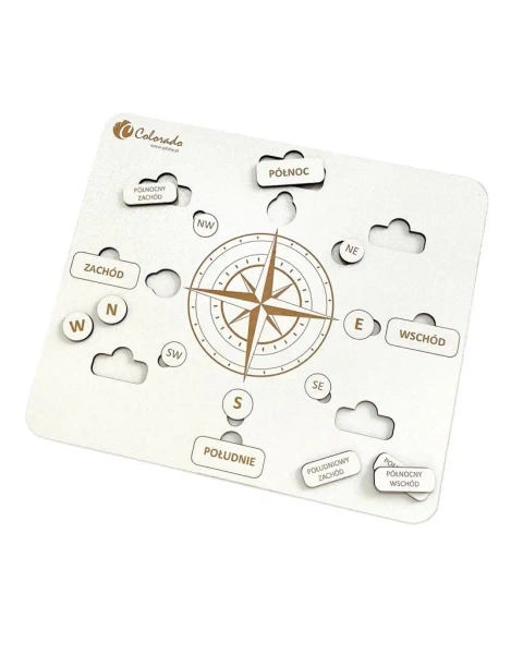 4 wyjmowane tabliczki z wygrawerowanymi skrótami pośrednich kierunków geograficznych.