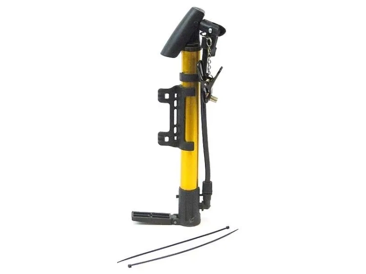 pompka rowerowa, metalowa, wys.33cm, z podkładką pod stopę, ruchomy wężyk, klips i uchwyt mocujący; 42x10cm PPB