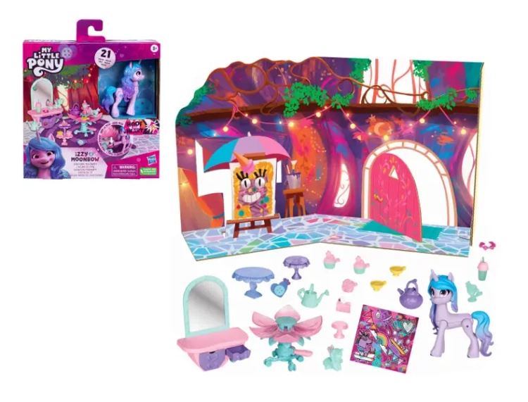 My Little Pony Tea Party jest zestawem składającym się z kucyka Izzy Moonbow i dwudziestu fantastycznych akcesoriów, dzięki którym zbudujecie tętniący życiem świat jak z bajki!
