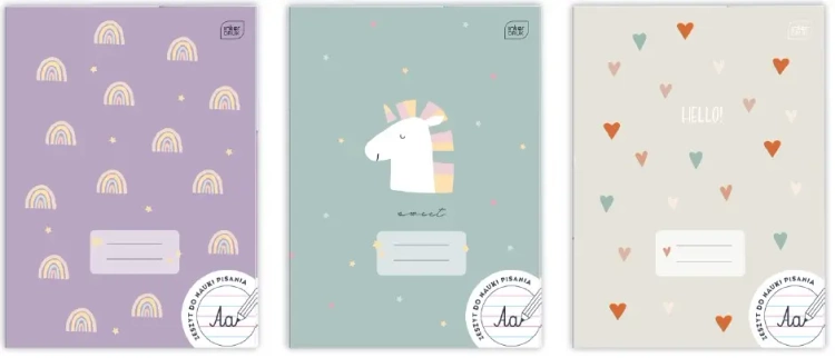 Zeszyt dostępny jest w wielu wersjach kolorystycznych, które są wysyłane losowo, co zawsze wnosi element zaskoczenia. Bez względu na kolor, każdy zeszyt jest wykonany z dbałością o detale, dzięki czemu będzie niezastąpionym pomocnikiem w procesie nauki pisania.