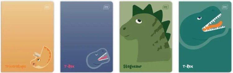 Format: A5. Liczba kartek: 16. Zadruk w kratkę. Zaokrąglone rogi. Błyszcząca okładka przyciągająca uwagę motywem dinozaurów.