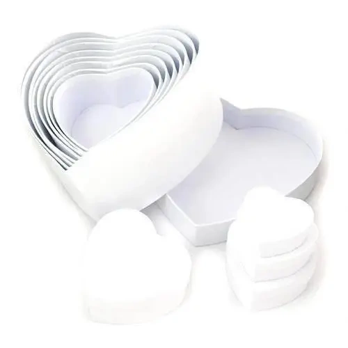 Oferujemy zestaw 12 pudełek w kształcie serca, które wykonano z trwałego, oklejanego kartonu. Te eleganckie, białe pudełka świetnie sprawdzą się na różne okazje. Każde z pudełek wyposażono w pokrywkę, co zapewnia praktyczność i estetykę.