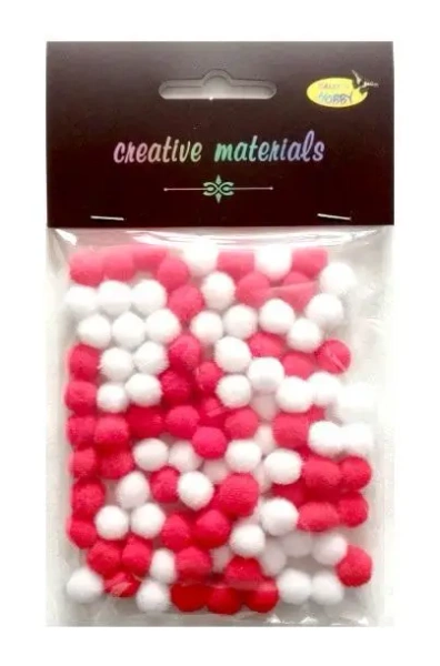 Pompony akrylowe biało-czerwona 10mm 100szt - Galeria Hobby