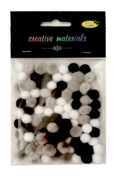 Pompony akrylowe biało-szaro-czarne 10mm 100szt - Galeria Hobby