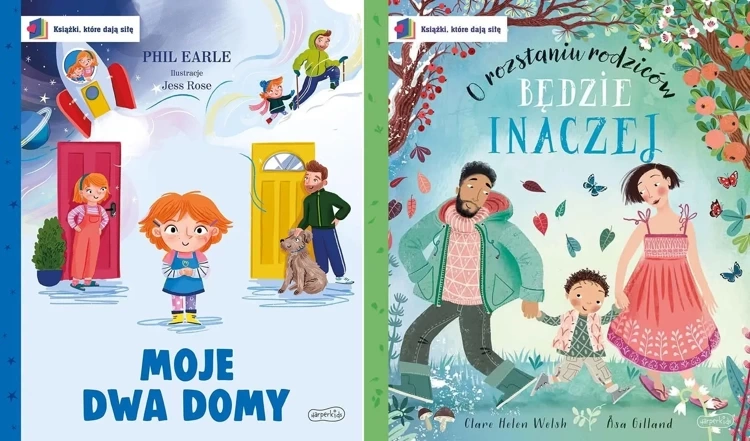 Bardzo potrzebna, kojąca i podnosząca na duchu książka obrazkowa dla dzieci, które czują się rozdarte po rozstaniu rodziców. Opowiastka o dziewczynce, której rodzice się rozstali i będzie teraz z nimi mieszkać na przemian. Książka Moje dwa domy: pomaga oswoić zmiany i je zaakceptować; wyjaśnia, że silne emocje, które nami targają podczas życiowej rewolucji są normalne i z czasem osłabną, a w końcu przemijają; podpowiada, jak łagodzić tęsknotę, jak przekuć lęk w odwagę. „Pocieszająca i pełna nadziei książka obrazkowa Phila Earle’a sugeruje pomysłowe sposoby na znalezienie odwagi i pokonanie lęku dziecka związanego z rozstającymi się rodzicami” – napisał o książce Moje dwa domy tygodnik „Sunday Times”. Książkę Moje dwa domy z ogromną wrażliwością przetłumaczyli Przemek Staroń i Jędrzej Sołowij. Serię Książki, które dają siłę wydawnictwa HarperKids przeznaczona jest dla dzieci w wieku przedszkolnym i wczesnoszkolnym. Starannie dobrane pozycje tworzą bibliotekę trudnych tematów, ale ujętych w formie książek obrazkowych. Ważne treści przedstawione są w czytelny sposób: prosto, czule, bezpiecznie, opierając się na zrozumiałych sytuacjach i przykładach z dziecięcej codzienności. Każda z pozycji poświęcona jest konkretnym problemom, często długo trwającym, takim jak: choroba, adopcja, rozstanie, starość, wojna, śmierć, rozłąka, przeprowadzka, emigracja, uzależnienia, niepełnosprawność. Książki, które dają siłę pomagają dzieciom oswoić się z tymi problemami, przygotować się na trudne wyzwania i je przetrwać. Wspierają dzieci w pokonywaniu trudności, odpowiadają na konkretne potrzeby, uczą szacunku do siebie, wiary w swe możliwości. W serii ukazały się także: Będzie inaczej. O rozstaniu rodziców