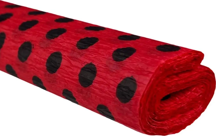 Bibuła Marszczona z Czerwonym Tłem i Czarnymi Kropkami