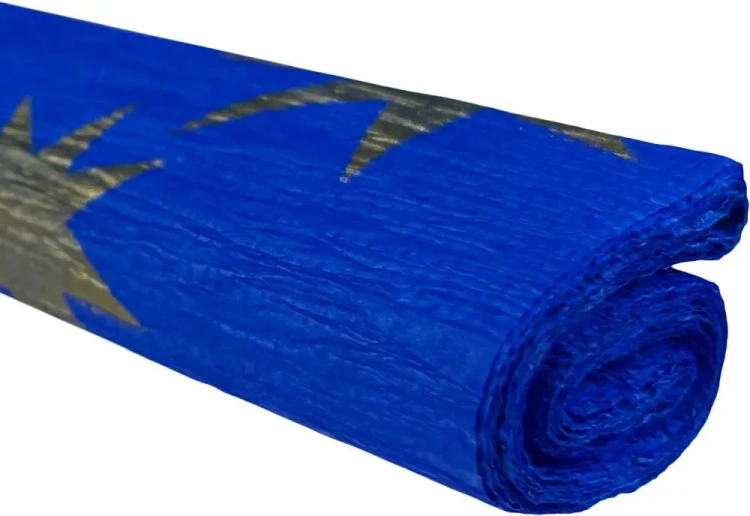 Paczka Bibuła marszczona 50x200 gwiazdy złote na niebieskim 10 rolek - TYMOS
