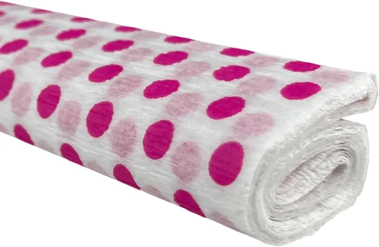 Odkryj bibułę marszczoną, która dzięki różowym kropkom na białym tle zapewnia unikalne efekty wizualne. Doskonale nadaje się do tworzenia wyjątkowych i kreatywnych projektów artystycznych. Połącz ją z innymi kolorami, aby uzyskać spektakularne kompozycje, które przyciągną uwagę.