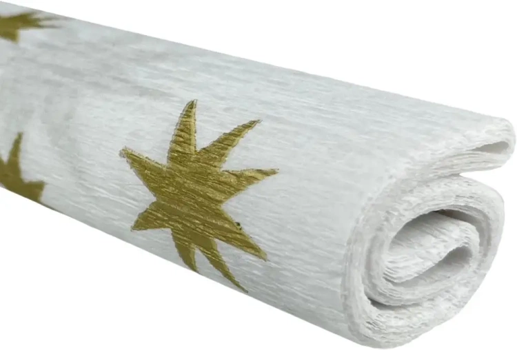 Bibuła Marszczona - Złote Gwiazdy na Białym Tle