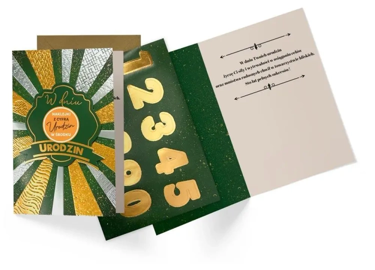 To idealny wybór łączący przyjazną cenę z jakością. Kartki z tej serii mają wyjątkowy dodatek - naklejki z cyferkami, z których można ułożyć dowolny wiek solenizanta.