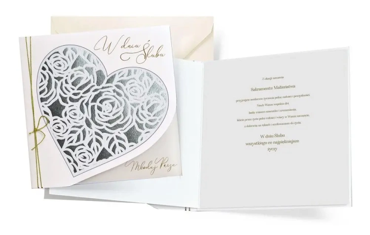 W środku każdej kartki znajdują się dobrane do okazji życzenia, a do kartki dołączona jest dopasowana koperta.