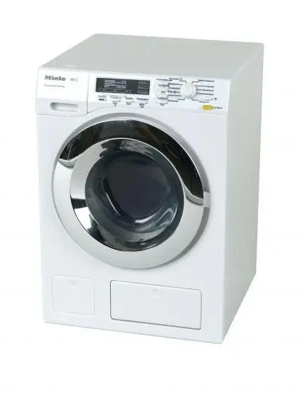 Pralka powstała na licencji firmy Miele, dlatego też jest wierną kopią prawdziwego urządzenia tej marki. Pralka, która nie tylko wygląda jak prawdziwa, ale także naprawdę pierze!!! Fenomen zabawki polega na tym, że działa zarówno "na sucho" jak i z wodą. To wyjątkowo przyjazne dzieciom urządzenie, posiada obracający się bęben oraz funkcję napełniania wodą i odprowadzania wody, a można ją obsługiwać zarówno na baterie, jak i za pomocą ręcznej korbki. Drzwiczki pralki otwierane są za pomocą przycisku On/Off. Pralka ma zaprogramowane 4 cykle prania: nabieranie wody, pranie, odprowadzanie wody i wirowanie. Każdy z programu można uruchomić osobno przez naciśnięcie odpowiednio przypisanego przycisku water in-wash- spin-water out na obudowie pralki, lub też włączyć kompletny program prania za pomocą przycisku start. Programator w przycisku start posiada także kontrolną zieloną diodę LED, która dodatkowo potęguje jej realistyczny wygląd. Bęben obraca się lub nie w zależności od cyklu prania. Wodę do pralki wlewa się przez szufladkę umieszczoną w przednim panelu, a odprowadzenie wody następuje przez wężyk znajdujący się z tyłu urządzenia. Na białej obudowie pralki poniżej bębna znajduje się mały schowek z imitacją dwóch detergentów do prania białego lub kolorów. Do bębna zmieści się z powodzeniem ubranko dla lalki. Dodatkowo pralka wydaje jeszcze kilka realistycznych dźwięków odpowiednio dla poszczególnych cyklów prania. Zabawkowa pralka z realistycznymi funkcjami pozwoli dzieciom na naśladowanie rodziców podczas wykonywania jednej z codziennych czynności, a wszystko to odbywa się w bezpiecznych warunkach, pozwalających na beztroską zabawę. Zabawka wymaga użycia baterii, które nie są zawarte w zestawie.