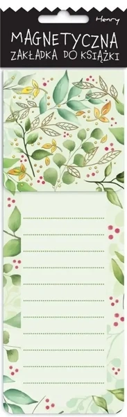 Magnetyczna zakładka do książki, z miejscem na notatkę. Zapakowana w woreczek foliowy z euro zawieszką.