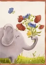 Karnet B8 mini Słoń z bukietem - Henry