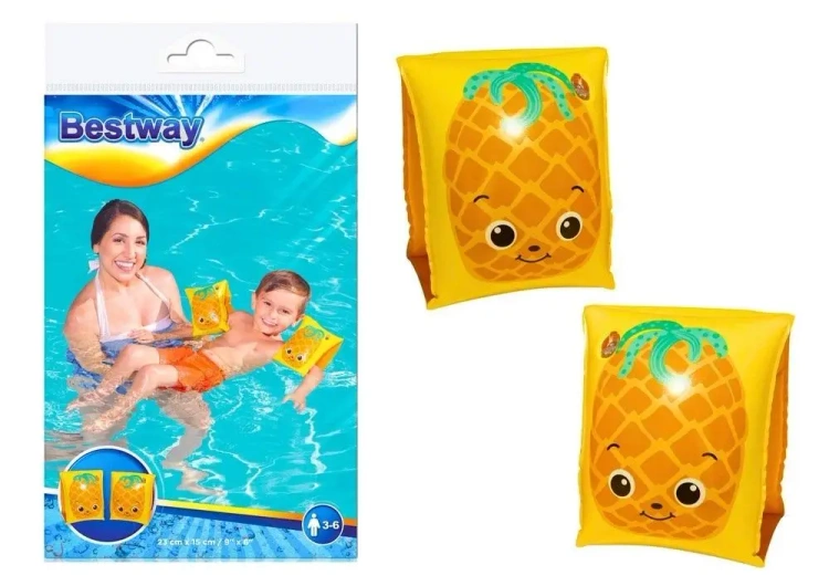 Rękawki Do Pływania Ananas Bestway 32042 Dla maluszków pierwsza próba kontaktu z wodą może być trudna. Z pomocą przychodzą Ci rękawki, które idealnie sprawdzą się podczas początkowej nauki pływania twojego dziecka. Ich ciekawa kolorystyka oraz wzór Ananasa z pewnością zachęcą wszystkich najmłodszych do zabawy i aktywności.Dzięki nim możesz mieć również pewność, że Twoje dziecko jest bezpieczne w wodzie. Rękawki są stworzone z wytrzymałego materiału odpornego na uszkodzenia, oraz szybkie do napompowania. Po złożeniu nie zajmują dużo miejsca, dzięki czemu można je zawsze zabierać ze sobą na wodne wyprawy. Dane techniczne: -dwie dmuchane komory -zapewniają dziecku bezpieczeństwo - wymiary 23 x 15 cm - sugerowany wiek 3 do 6 lat - sugerowana waga dziecka 18-30kg Waga: 0,1 kg Wymiary opakowania: 17 cm x 2 cm x 29 cm