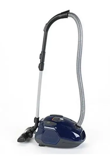 Odkurzacz powstał na licencji firmy Electrolux, dlatego też jest wierną kopią prawdziwego urządzenia tej marki. Zabawkowy odkurzacz jest w kolorze granatowym z czarny spodem, z szarą rurą i czarną szczotką z dwoma prowadzącymi kółkami. Ta kolorystyka w połączeniu z precyzyjne wykonanymi elementami i logiem Elektrolux sprawia wrażenie bardzo solidnego sprzętu, przez co odkurzacz wygląda jak prawdziwy. Odkurzacz posiada pod spodem trzy małe obrotowe 360 kółka, dzięki czemu zabawka idealnie porusza się on po powierzchniach płaskich. Elastyczna szara rura odkurzacza ma ok. 50 cm długości, a rura odkurzacza ze szczotką z dwoma prowadzącymi kółkami ma około 15 cm szerokości, 60 cm długości i posiada wygodny uchwyt, dopasowany rozmiarem do dziecięcych rączek, dlatego zabawa jest komfortowa dla dzieci. Włączenie odkurzacza następuję przez naciśnięcie na obudowie dużego czarnego przycisku. Dodatkowo na obudowie znajduje się jeszcze czarne terkoczące podczas przekręcania pokrętło imitujące regulację siły ssącej odkurzacza, a także duży czarny przycisk imitujący wciąganie przewodu zasilania. Zabawkowy odkurzacz wciąga podczas zabawy dołączony do zestawu piankowy granulat. Odkurzacz posiada na obudowie wyciągany zbiorniczek na wciągnięty granulat, który można opróżnić po skończonej zabawie. Zabawka przez obracający się silniczek naśladuje także odgłos prawdziwego odkurzacza, dzięki czemu zabawa nim jest jeszcze bardziej realistyczna. Dla właściwego działania zabawka wymaga użycia baterii, które nie są dołączone do zestawu. Zabawkowy odkurzacz Electrolux to wspaniała zabawka dla każdego dziecka, które uwielbia naśladować rodziców podczas codziennych czynności, co ponadto dostarczy dzieciom realistycznych wrażeń i wspaniałą zabawę w bezpiecznych warunkach. Zabawka wymaga użycia baterii, które nie są zawarte w zestawie.