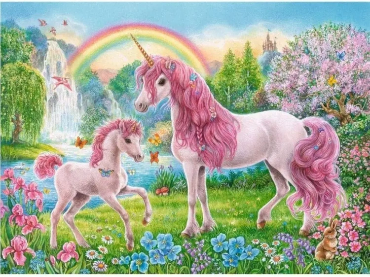 Diamentowa mozaika - Jednorożce w ogrodzie