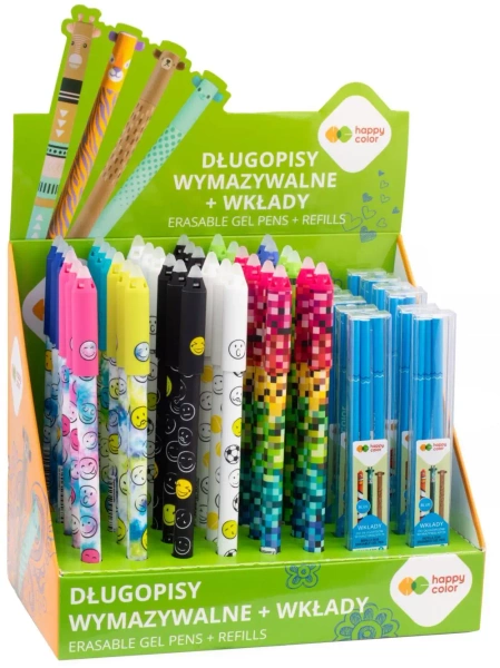 Display Długopis wymazywalny mix 2 0.5mm niebieski Happy Color 36 szt. + wkłady 12 etui