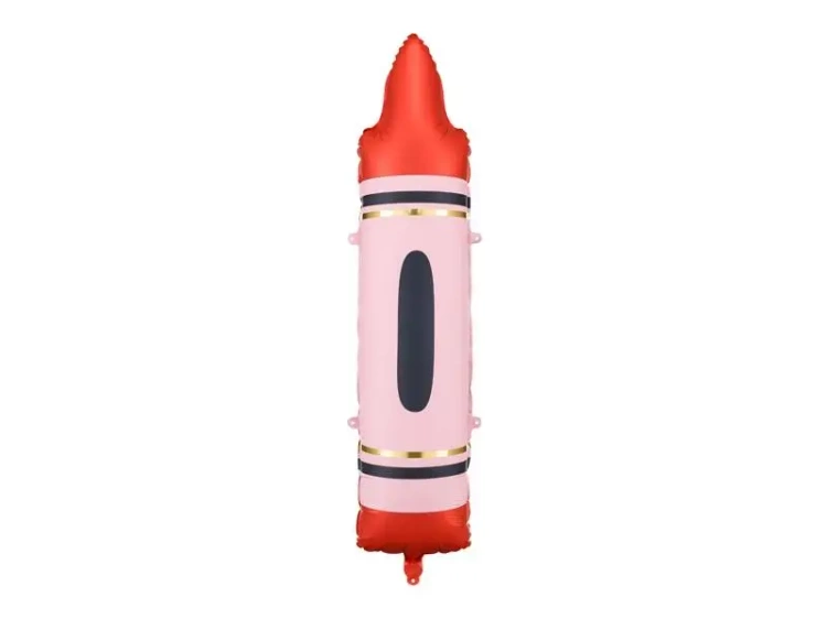 Balon foliowy Kredki, czerwona. Wymiary przed napompowaniem ok. 34,5x108 cm, wymiary po napompowaniu ok. 23x104 cm. Do napompowania powietrzem. Zestaw zawiera słomkę.