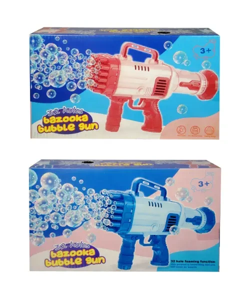 Pistolet na bańki dla wesołej zabawa na świeżym powietrzu. Pistolet zachęca do aktywności fizycznej. W zestawie znajduje się 1 pistolet, 1 płyn, 1 pojemnik. Zabawka dla dzieci od 3 lat. Produkt zapakowany w kartonowe opakowanie. Zabawka działa na baterie, baterie nie są załączone w zestawie. Zabawka występuje w kilku wersjach kolorystycznych. Kolor wybierany losowo.
