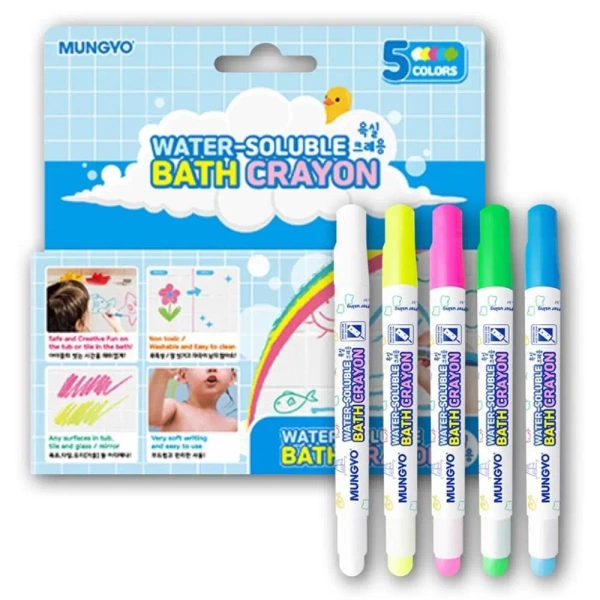 Zestaw zawiera pięć kredkowych barw, które sprawiają, że codzienna kąpiel staje się pełna radości i twórczych wyzwań. Możesz spokojnie pozwolić dziecku na malowanie zarówno w wannie, jak i na kafelkach.