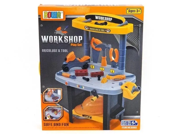Stół do majsterkowania z zestawem narzędzi i kaskiem; 61x48x9cm Box