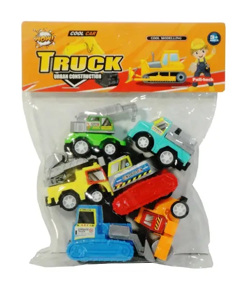 Małe pojazdy budowlane do zabawy w plac budowy. Maszyny budowlane działają na napęd pull back. Zabawki dla dzieci od 3 lat. Produkt zapakowany w przezroczysty worek. Podane wymiary są wymiarami produktu w opakowaniu.