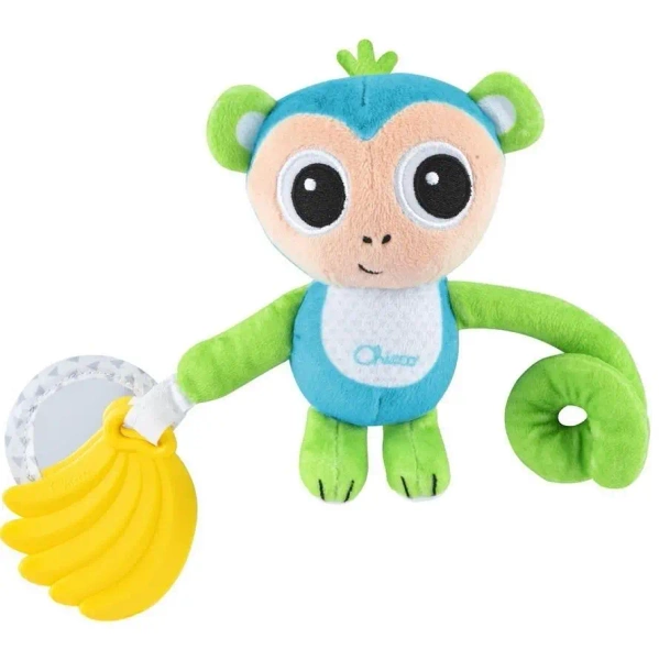 Ta urocza małpka ma długą i elastyczną łapkę, która pozwala łatwo przymocować ją do wózka, spacerówki lub fotelika samochodowego, aby towarzyszyła dziecku w każdej sytuacji.