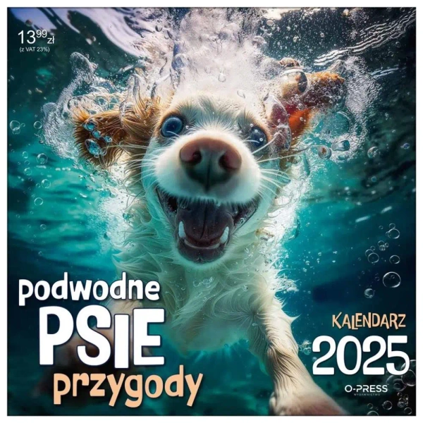 Kalendarz 2025 33x33cm ścienny Podwodne psie... - O-press