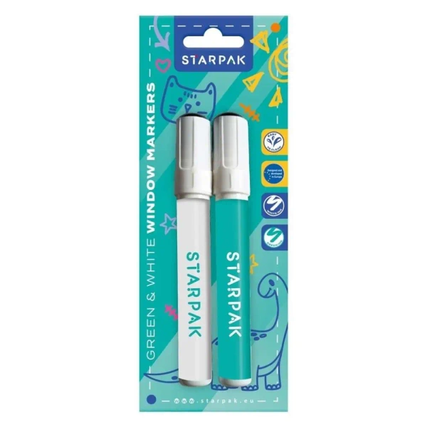 Markery marki STARPAK charakteryzują się tradycyjnym designem, co wyróżnia je spośród innych dostępnych na rynku. Ich odpowiednio wyważony środek ciężkości zapewnia komfort użytkowania. Dzięki mocnemu zatrzaskowi tusz nie wysycha, a idealna grubość pisaka pozwala na pewny uchwyt i precyzyjne pisanie.