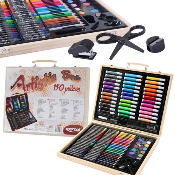 Odkryj świat sztuki z imponującym zestawem artystycznym, który zawiera aż 150 różnorodnych narzędzi, stworzonych z myślą o rozwijaniu Twoich umiejętności twórczych i tworzeniu niezwykłych dzieł.