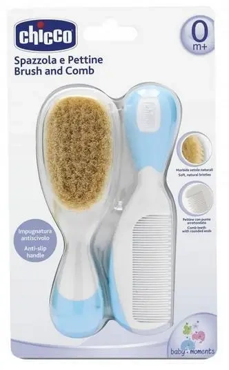 Szczotka + grzebyk z naturalnego włosia niebieskie - Chicco