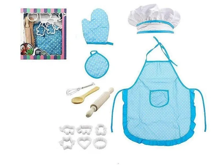 zestaw szefa kuchni, fartuch, rękawica, czapka, wałek, przybory