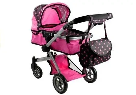 Głęboki wózek z funkcją spacerówki różowy w groszki