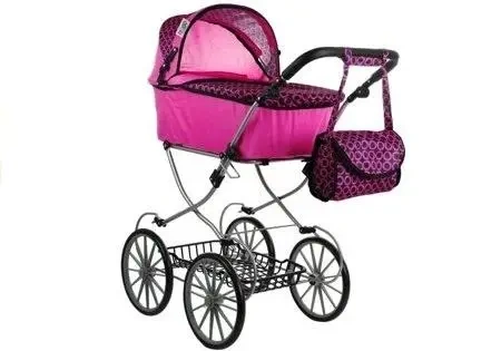 Skąpany w połączeniu różu i czerni retro wózek jest doskonały w swej prostocie. Nie rozprasza wieloma kolorami, pozwalając skupić się na zabawie w opiekę nad zabawkowym bobasem. Wózek jest rewelacyjnym gadżetem urozmaicającym zabawę w dom, dzięki niemu każda opiekuńcza i troskliwa mamusia będzie mogła przyjemnie spędzać czas ze swoją lalką i zabawkami nawet poza domem. Dużym ułatwieniem jest koszyk, znajdujący się w dolnej części konstrukcji, a także zapinana na rzep torba, umożliwiające przechowywanie i transport potrzebnych podczas zabawy elementów, na przykład ubranek dla bobaska albo buteleczki. Zabawa z wykorzystaniem retro wózeczka na lalki to nie tylko przyciągający wzrok design posiada również wymiar edukacyjny.
