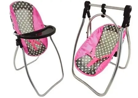 Huśtawka dla lalek 2w1 Alice gwiazdki szaro-różowa - Leantoys