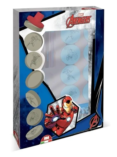 Zestaw zawiera osiem pieczątek, poręczną poduszeczkę do tuszu oraz dziesięć arkuszy do twórczej zabawy. Dodatkowo znajdziesz w nim osiem kolorowych pisaków oraz praktyczny uchwyt. Dzięki temu dzieci mogą tworzyć własne, fantastyczne przygody Avengersów w formie unikalnych kompozycji.